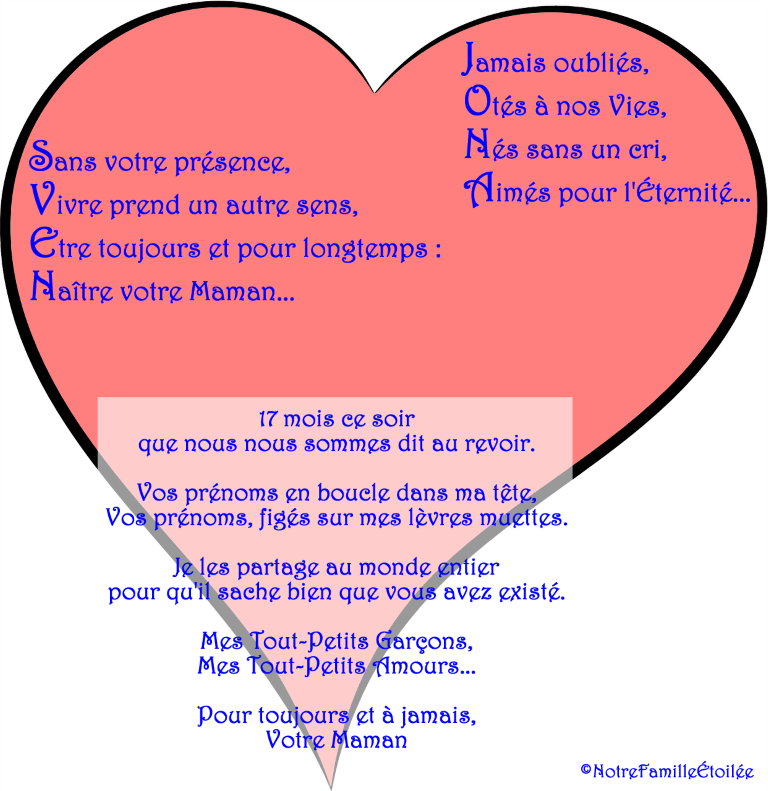 Pour briser le silence, écrivons, racontons, narrons ces courtes vies, cet amour incommensurable, ces liens plus forts que la mort...