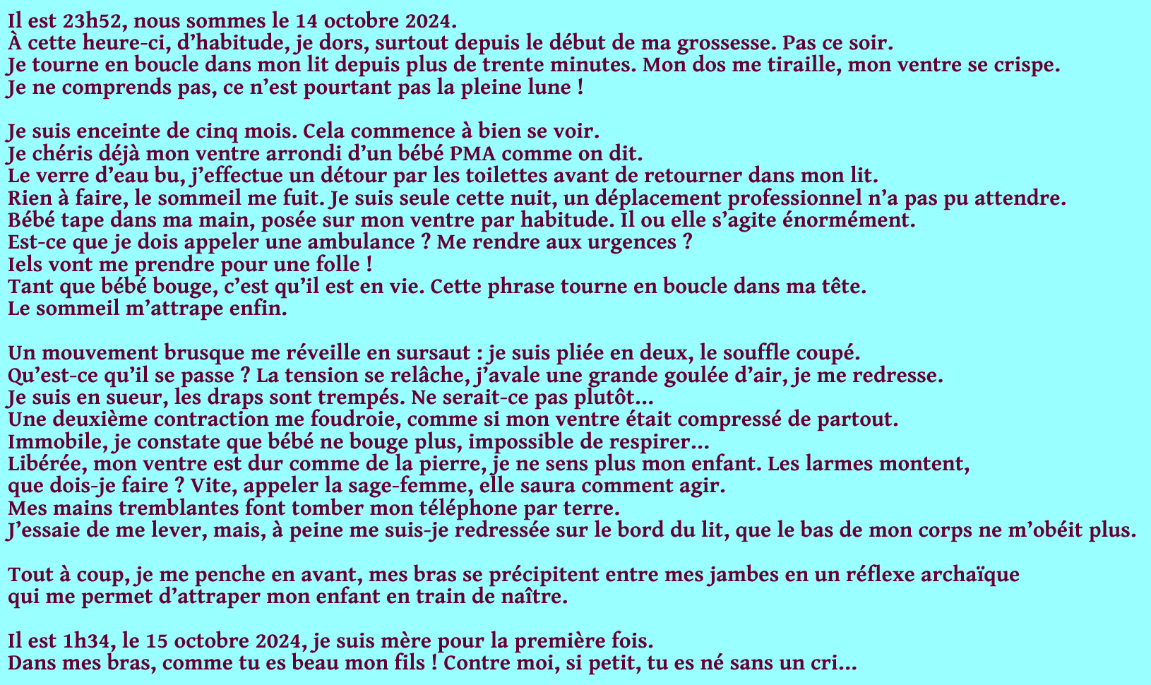 En 2018, j'ai en effet porté des jumeaux qui sont nés extrêmes prématurés. Malgré tous leurs efforts et notre impuissance, ils ont vécu quatre jours, dans le service de réanimation néo-natale.