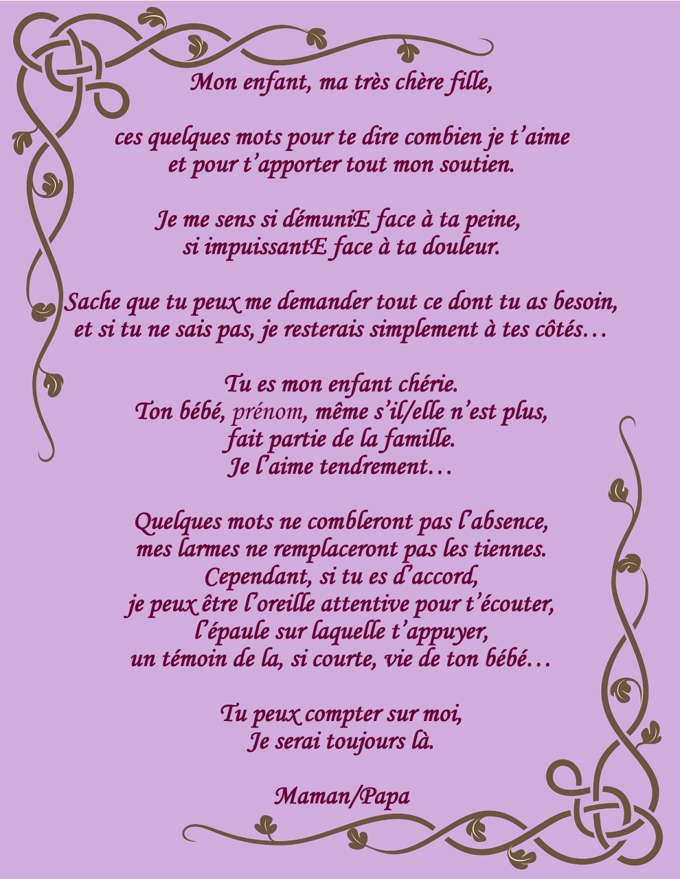 ✨ un court texte ou poème pour votre enfant, comme un hommage, un ultime murmure d'amour ;